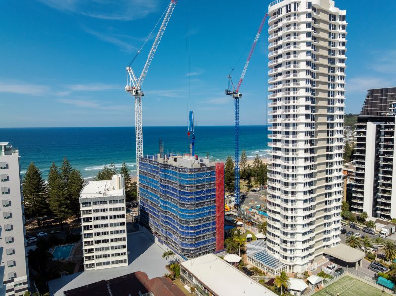 Isabel is rising steadily and taking shape on the Burleigh Heads skyline. The structure is poured to Level 11, glazing is climbing the tower, and interiors are beginning to take form. Looking ahead, October will see further structural progress with the slab pours for Levels 12 and 13, formwork commencing on Level 14 and glazing continue upwards as Isabel rises toward its full 18-level height.