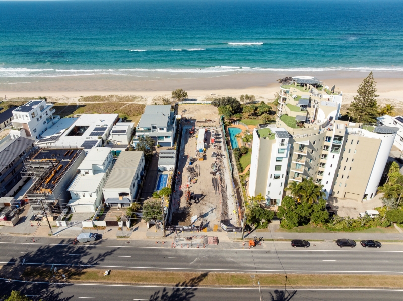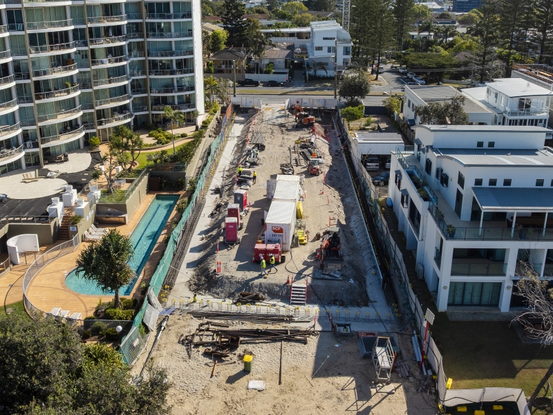Sophia is establishing its foundations with precision, as capping beam installation advances and service works along the Gold Coast Highway move forward. Looking ahead, October will see this momentum continue, with the capping beam installation progressing further. The team will also begin installing de-watering wells to create the stable, dry conditions needed for excavation and basement foundation works.